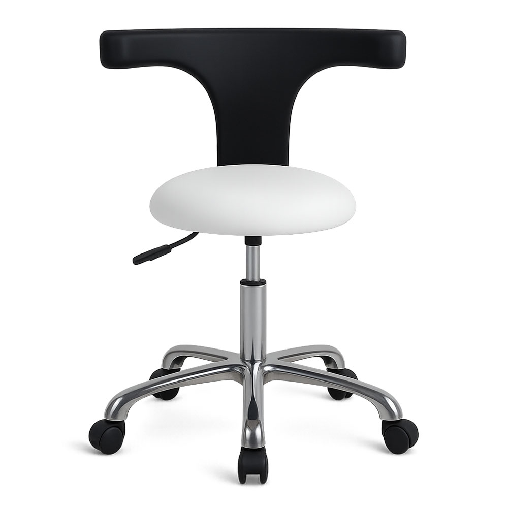 Stylowy i ergonomiczny taboret to idealne rozwiązanie dla profesjonalnych salonów kosmetycznych, podologicznych, medycznych, wizażu. Wyposażony w anatomiczne oparcie w kształcie litery „U”, które zapewnia nie tylko komfortową pozycję w trakcie pracy, ale może także pełnić funkcję podłokietnika, zwiększając wygodę, funkcjonalność i podwyższa komfort pracy przy długich zabiegach.