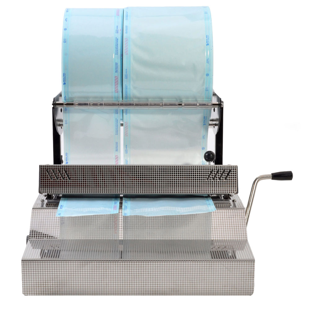 Zgrzewarka o kompaktowej budowie pomocna w przygotowaniu pakietów papierowo-foliowych przeznaczonych do sterylizacji narzędzi w autoklawie.